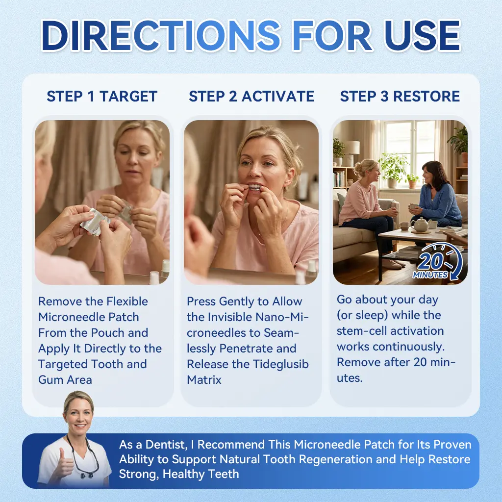 I even looked into traditional cosmetic options like veneers, but they required grinding down healthy teeth. The process was painful and expensive, and I didnโt want to sacrifice my health just for appearance. Just when I was about to give up, a doctor friend introduced me to a new solution โ Glimmerlyยฎ Tideglusib Microneedle Patch. She explained that itโs a non-invasive, pain-free approach that supports the teethโs natural repair process through biological mechanisms.